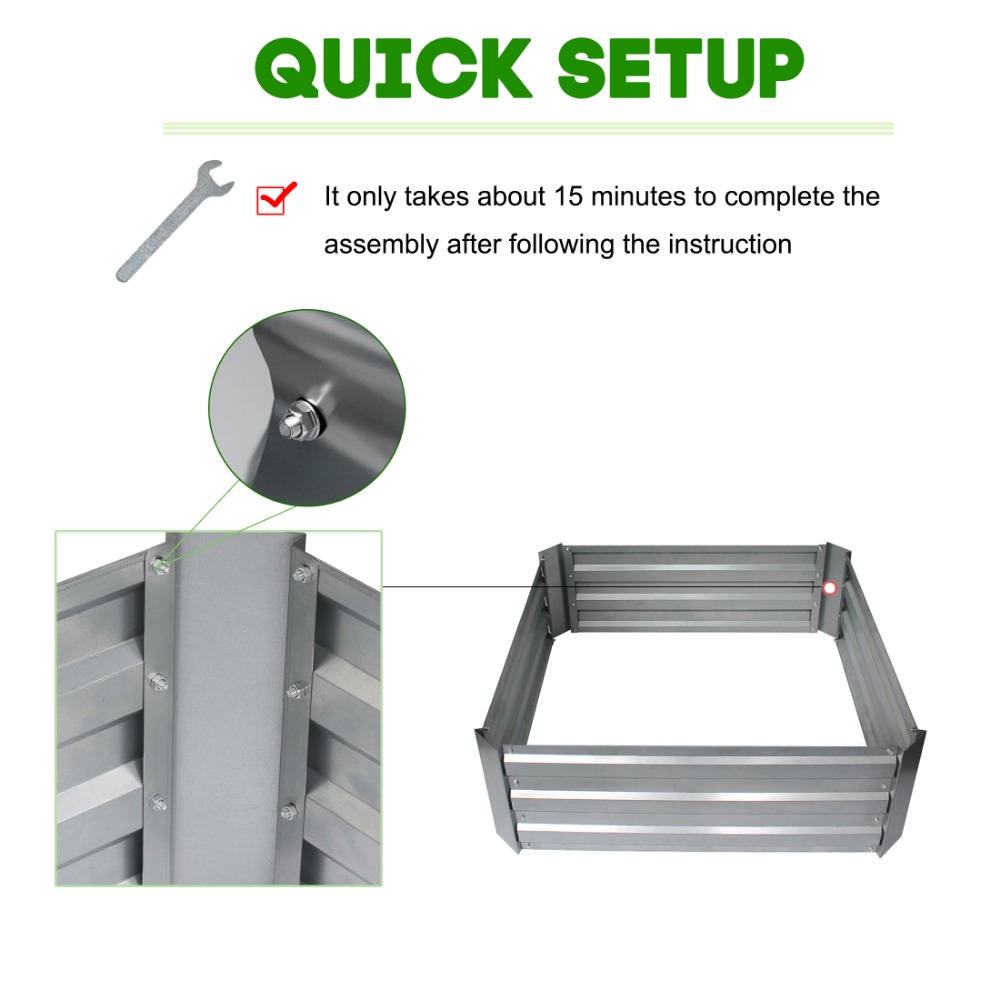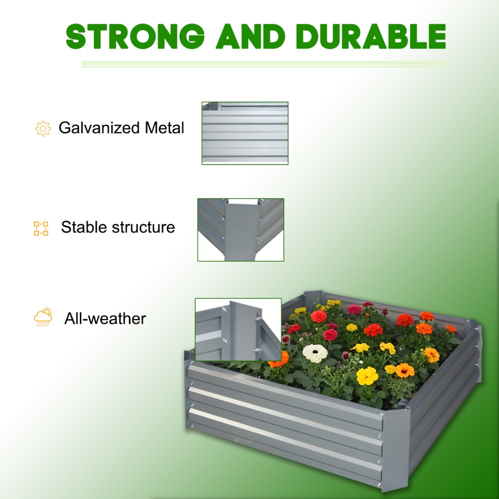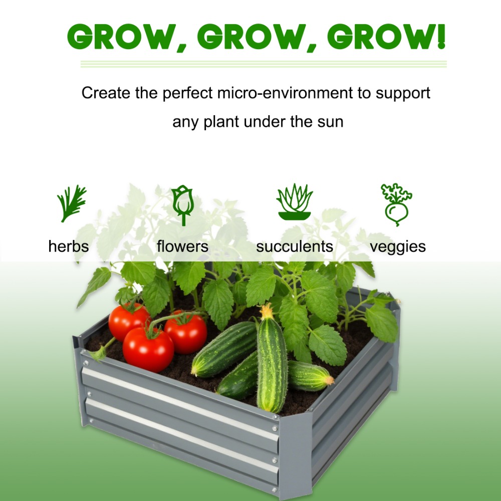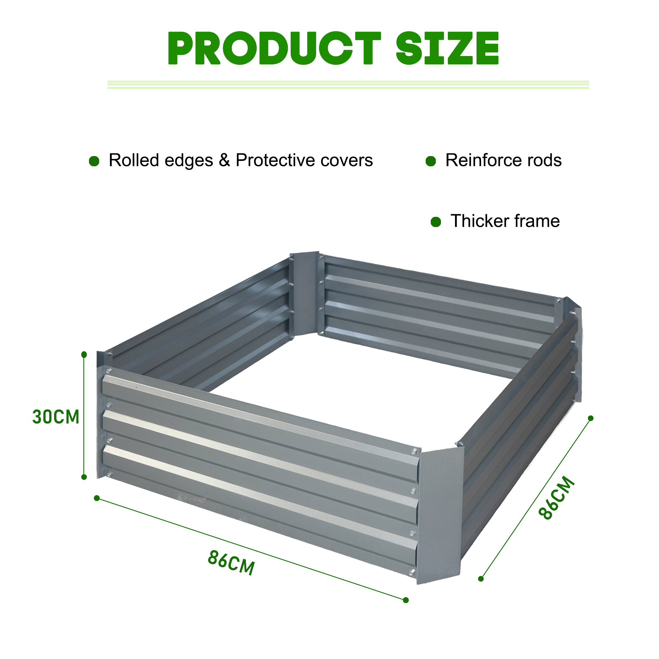 【4W Raised Garden Bed for Easy Gardening】The 4W 86 x 86 x 30 cm (3x3x1 ft) galvanized metal raised garden bed helps create an organized and productive growing space in your backyard, patio, or greenhouse. Ideal for planting vegetables, herbs, and flowers.