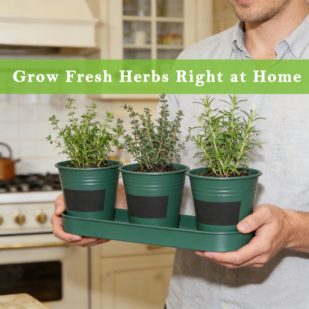 This 4W set includes 3 small metal flower pots with a matching tray, perfect for keeping your plants organized on windowsills, countertops, or desks.Available in White, Natural Metal, Grey, and Silver, easy to match different home and kitchen décor styles.Each planter comes with a black mini chalkboard in the center, ideal for labeling plants or writing small notes.Suitable for herbs, succulents, flowers, and other small indoor plants. Great for kitchen windows or tabletop decoration.