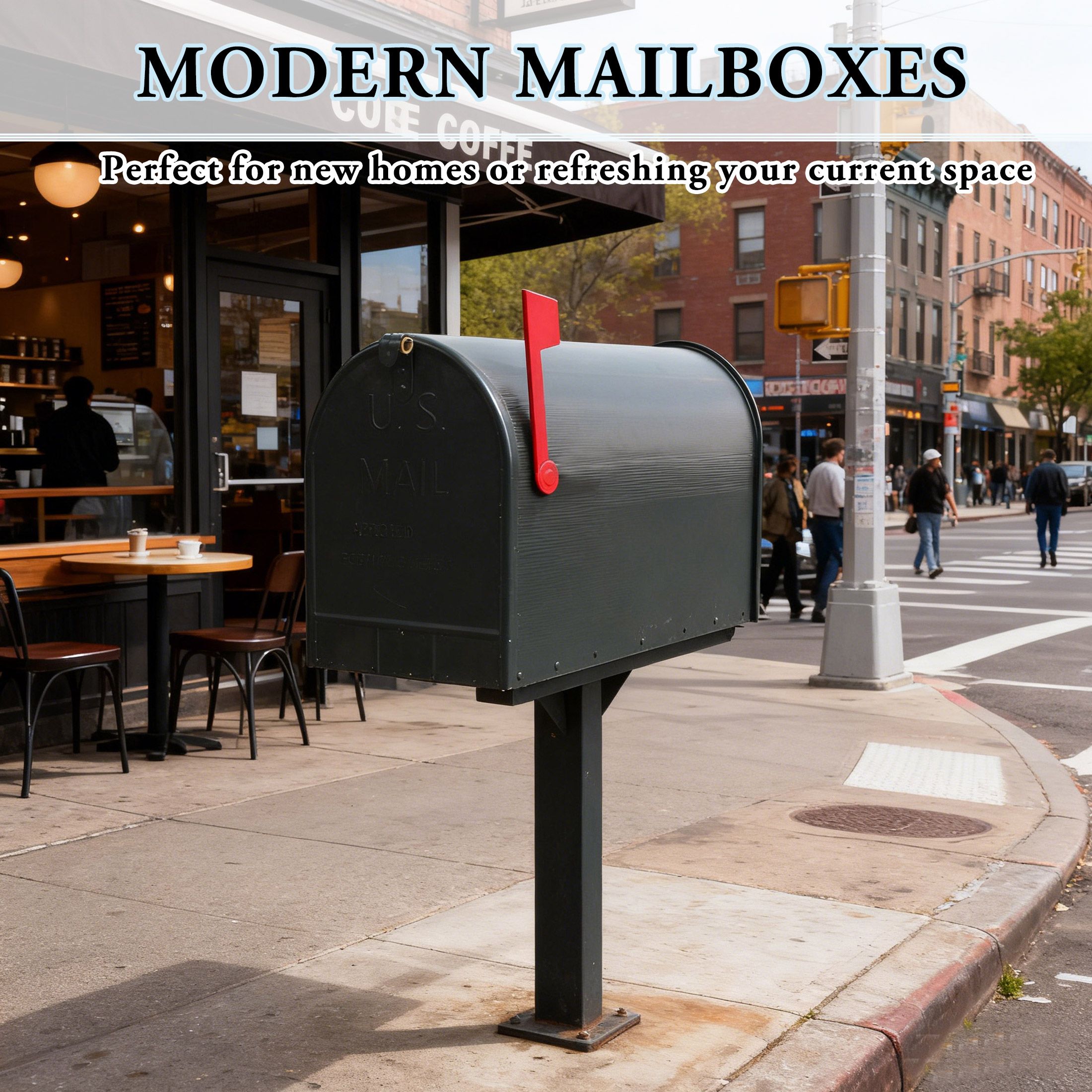 4W Rural Mailboxes Galvanized Steel,Jumbo Size,Post-Mount Mailbox in Black
