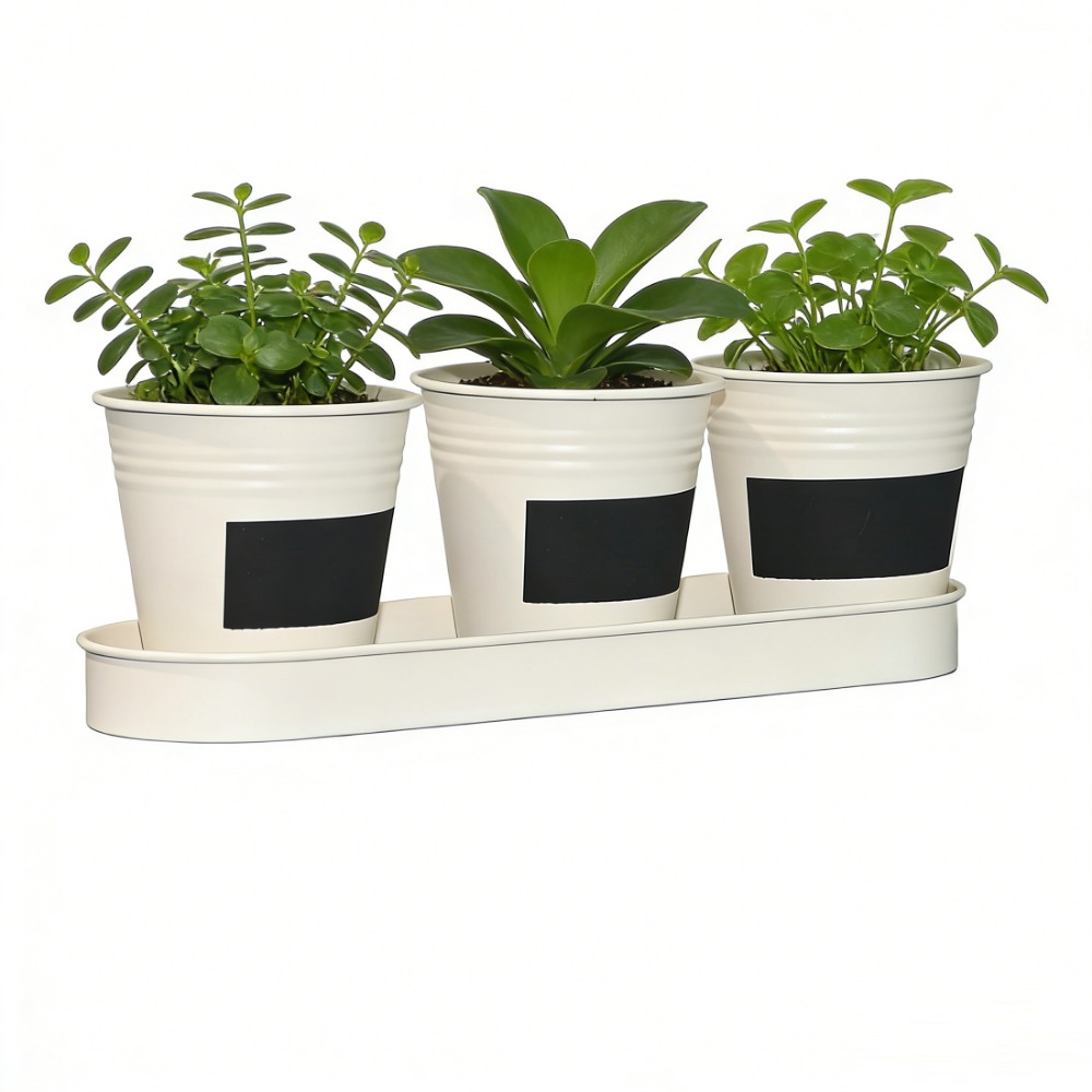 4W Indoor Metal Herb Garden Planter Set, 3 Pots with Tray and Chalkboard Labels, White