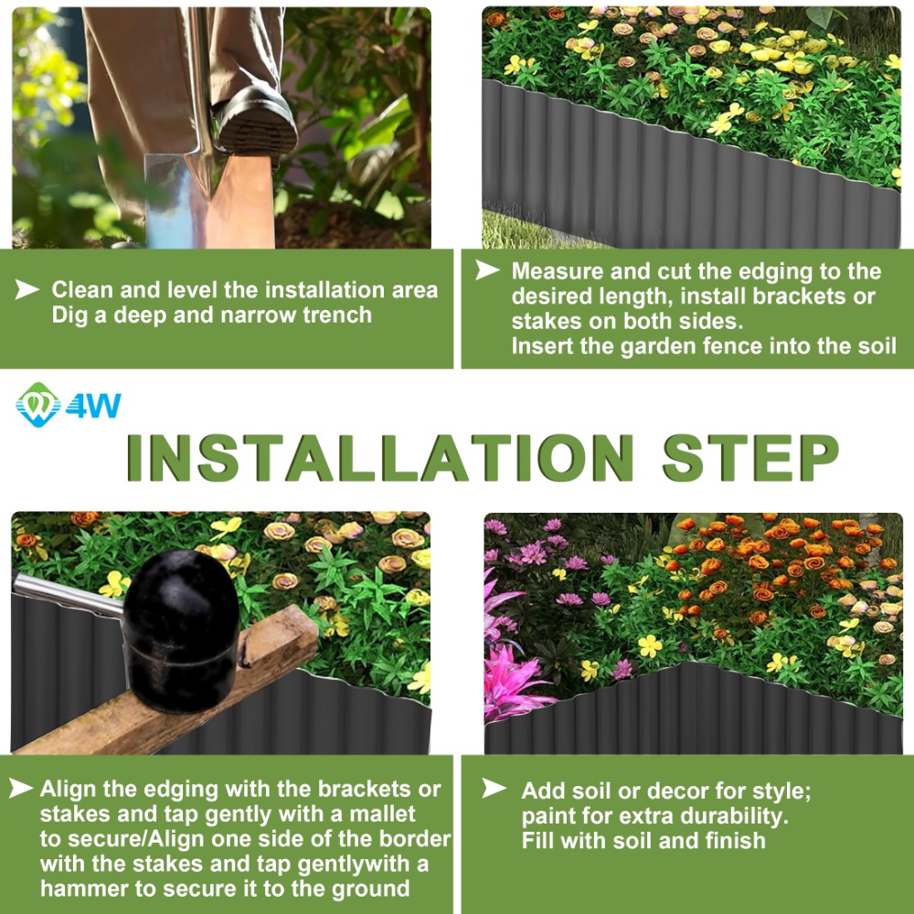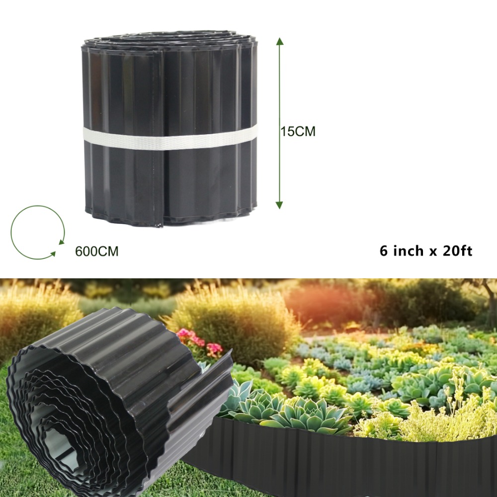 4W Corrugated Galvanized Steel Landscape Edging, 6" x 20' Flexible Lawn Edge for Flower Beds, Yard, and Patio (Black)