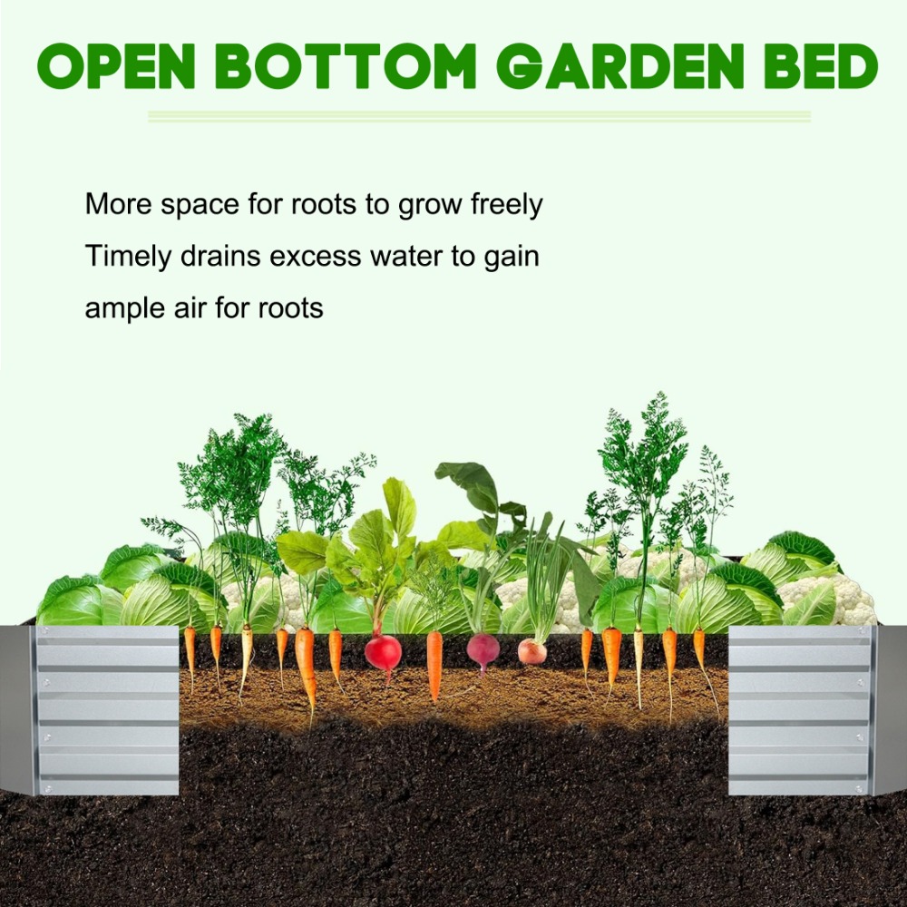 【4W Raised Garden Bed for Easy Gardening】The 4W 86 x 86 x 30 cm (3x3x1 ft) galvanized metal raised garden bed helps create an organized and productive growing space in your backyard, patio, or greenhouse. Ideal for planting vegetables, herbs, and flowers.