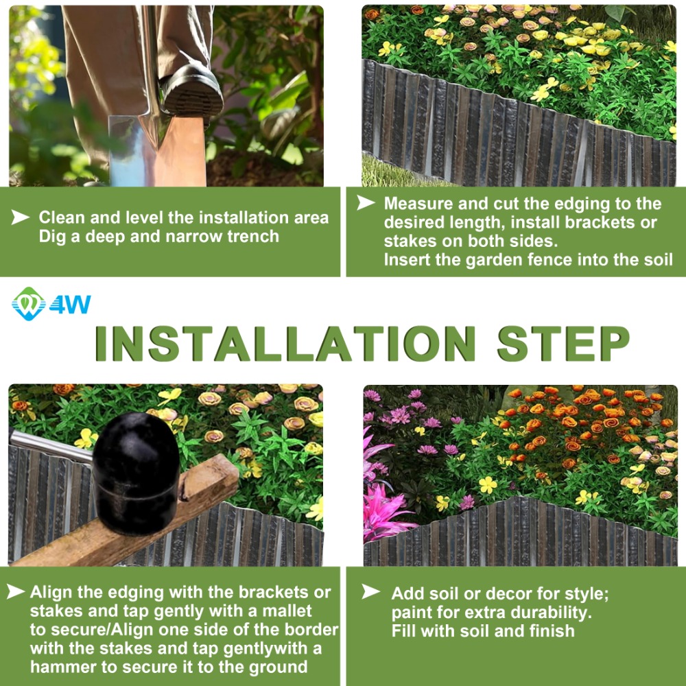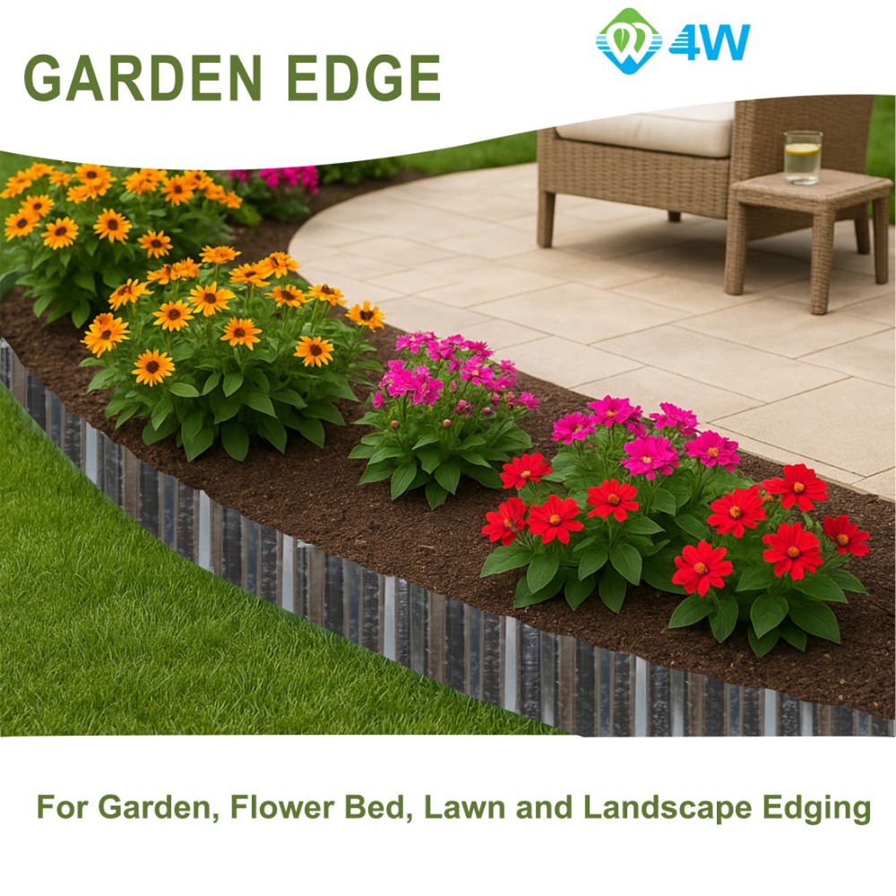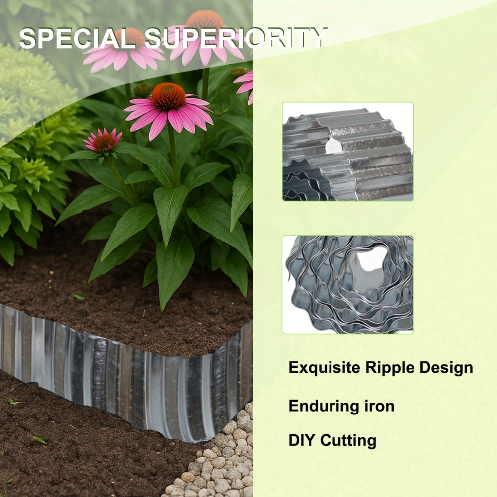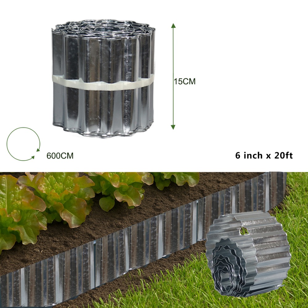 4W Galvanized Steel Garden Edging, 6" x 20' Corrugated Landscape Border, Flexible Lawn and Yard Edging Strip for Flower Beds and Tree Rings, Natural
