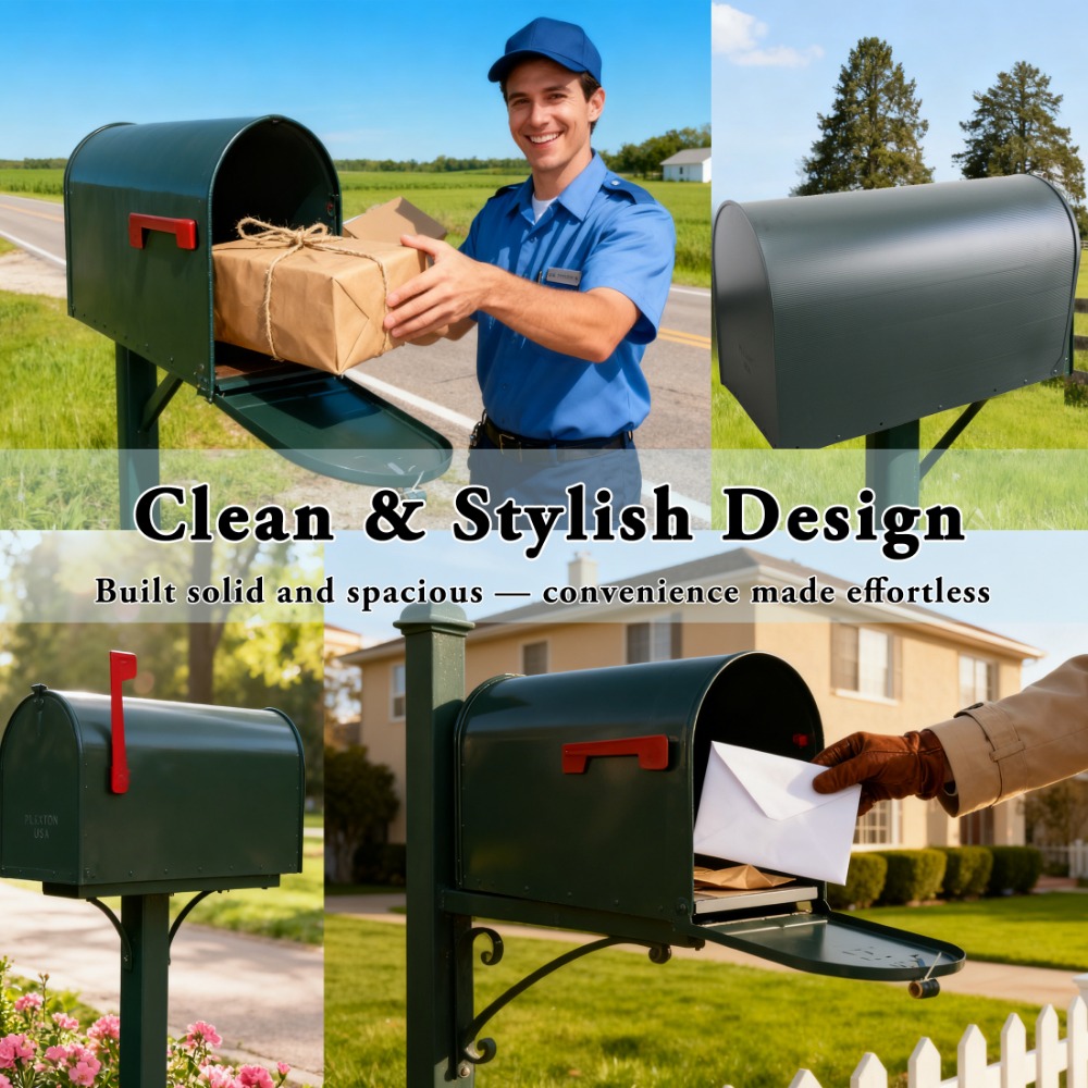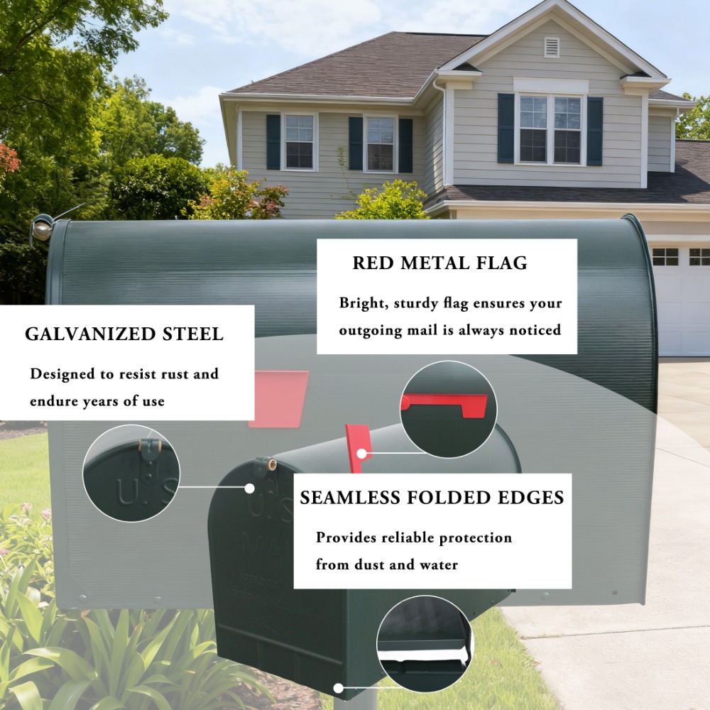4W Rural Mailboxes Galvanized Steel,Jumbo Size,Post-Mount Mailbox in Green