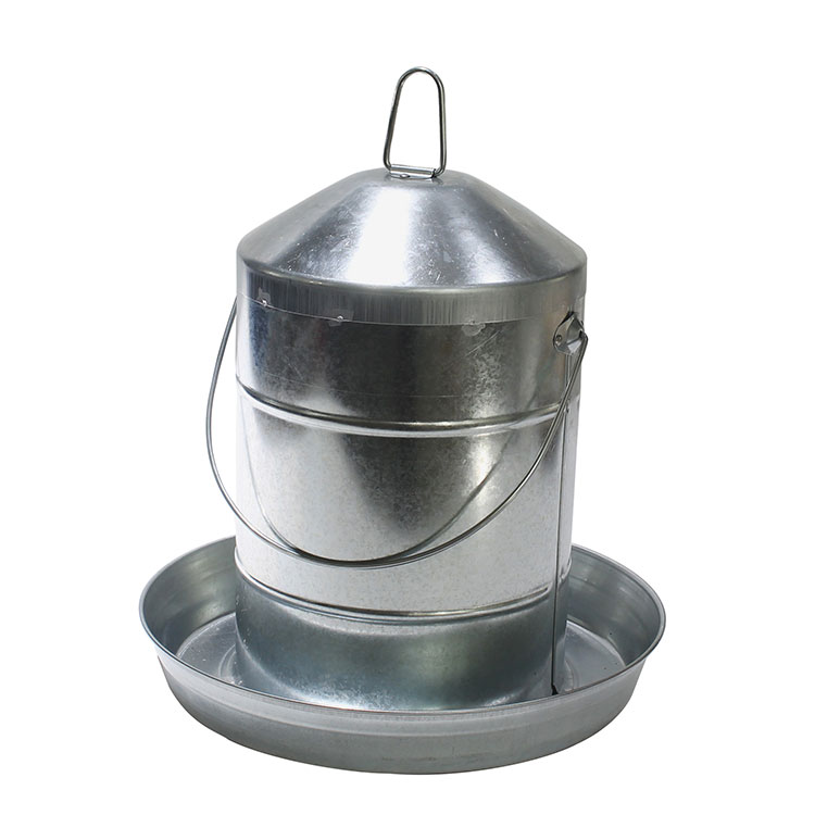Unique design uses vacuum to maintain constant water level. Cone-shaped top prevents roosting. Joints are rolled, instead of soldered, to create tight-fitting seams. Galvanized, sturdy double-wall construction.
